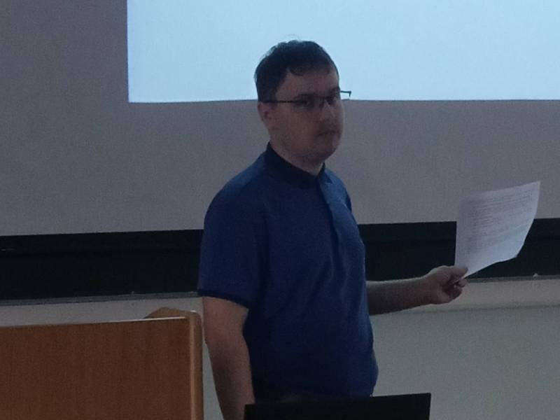 Приняли участи в обсуждении и задали вопросы: инженер ОмГУ им. Ф.М. Достоевского А.Г. Петров; инженер АО «ОНИИП» К.В. Немчанов, доцент ОмГУ им. Ф.М. Достоевского А.А. Ляхов; аспирант НИ ТГУ В.В. Васин, руководитель семинара С.В. Кривальцевич.