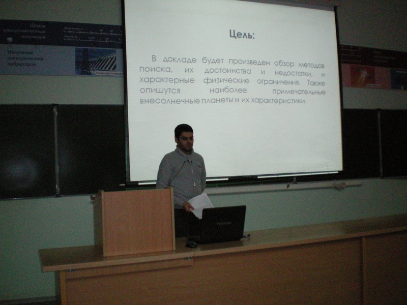 В докладе будет произведен обзор методов поиска, их достоинства и недостатки, и характерные физические ограничения. Также опишутся наиболее примечательные внесолнечные планеты и их характеристики.